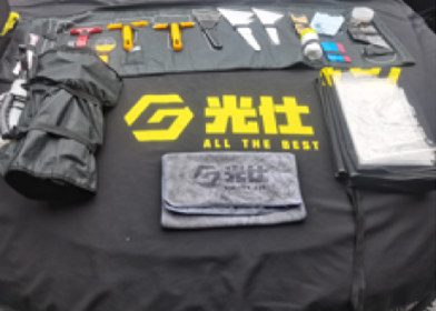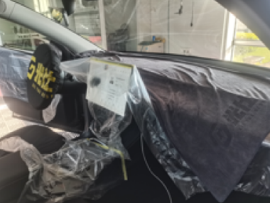 13.收拾好各位工具保护物料,恢复车内物品放置,清洁车辆,挂施工完毕牌,并在仪表台放置施工验收单