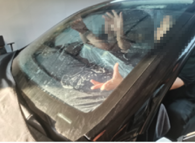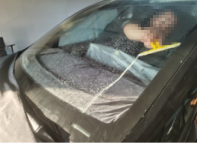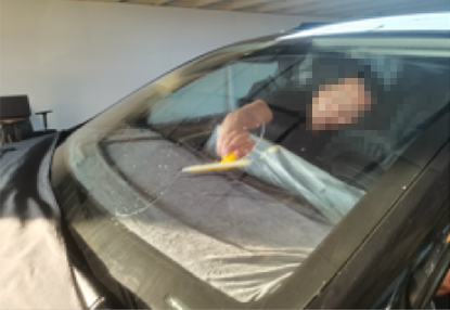 前窗膜安装由一名技师持续进行;