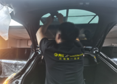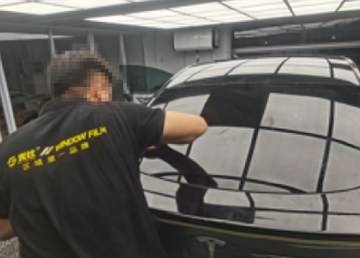 前窗膜安装完成转移工序进行后窗膜安装,