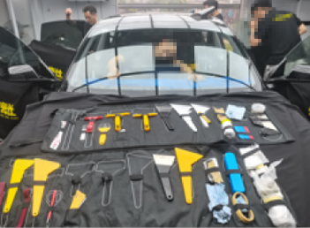 小三角窗膜施工由二名技师完成