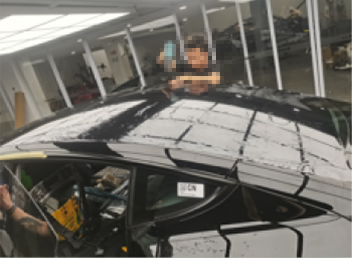 开始天窗膜作业,由二名技术配合完成