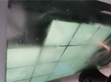 6.用烤枪对膜片烘烤,使之收缩并定出符合玻璃弧度的形状