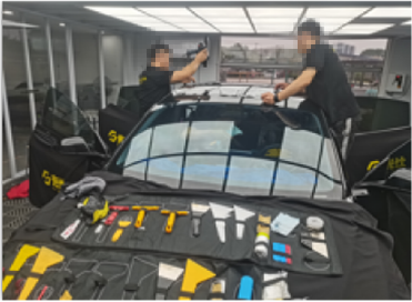 侧窗膜作业技师须配合前后窗膜技师必要的辅助工作